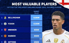 落選新一期英格蘭大名單球員身價榜:貝林厄姆居首、福登第二